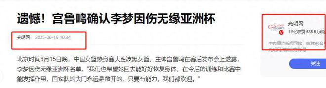 宫鲁鸣刚宣布“李梦无缘亚洲杯”的消息,瞬间引起网友广泛的讨论。